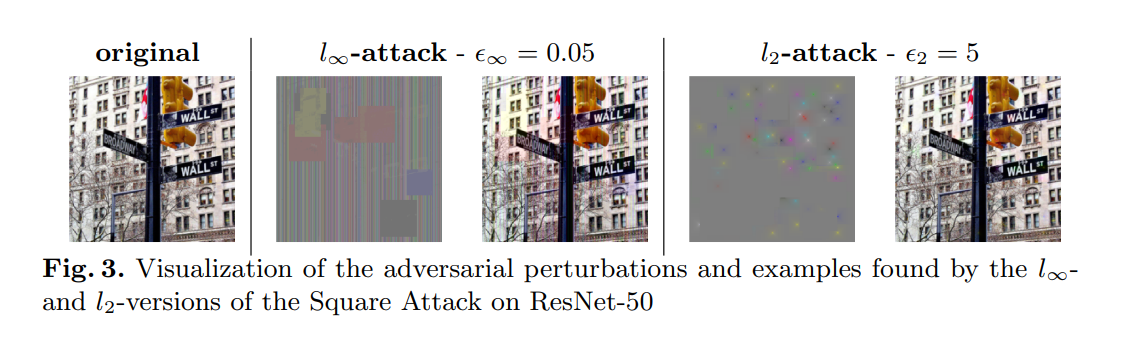 While other black-box attacks take many queries to perform attacks, the square attack requires relatively few. The attack works by taking repeated alterations in the shape of a square on the image, keeping it if it increases the loss of the model. The Square Attack, upon release, was successful enough that it even outperformed some existing white-box approaches on benchmarks.
